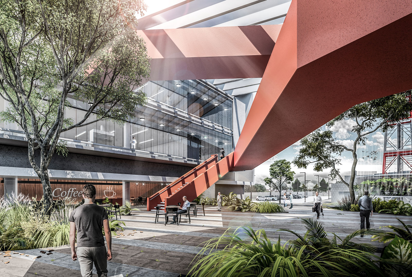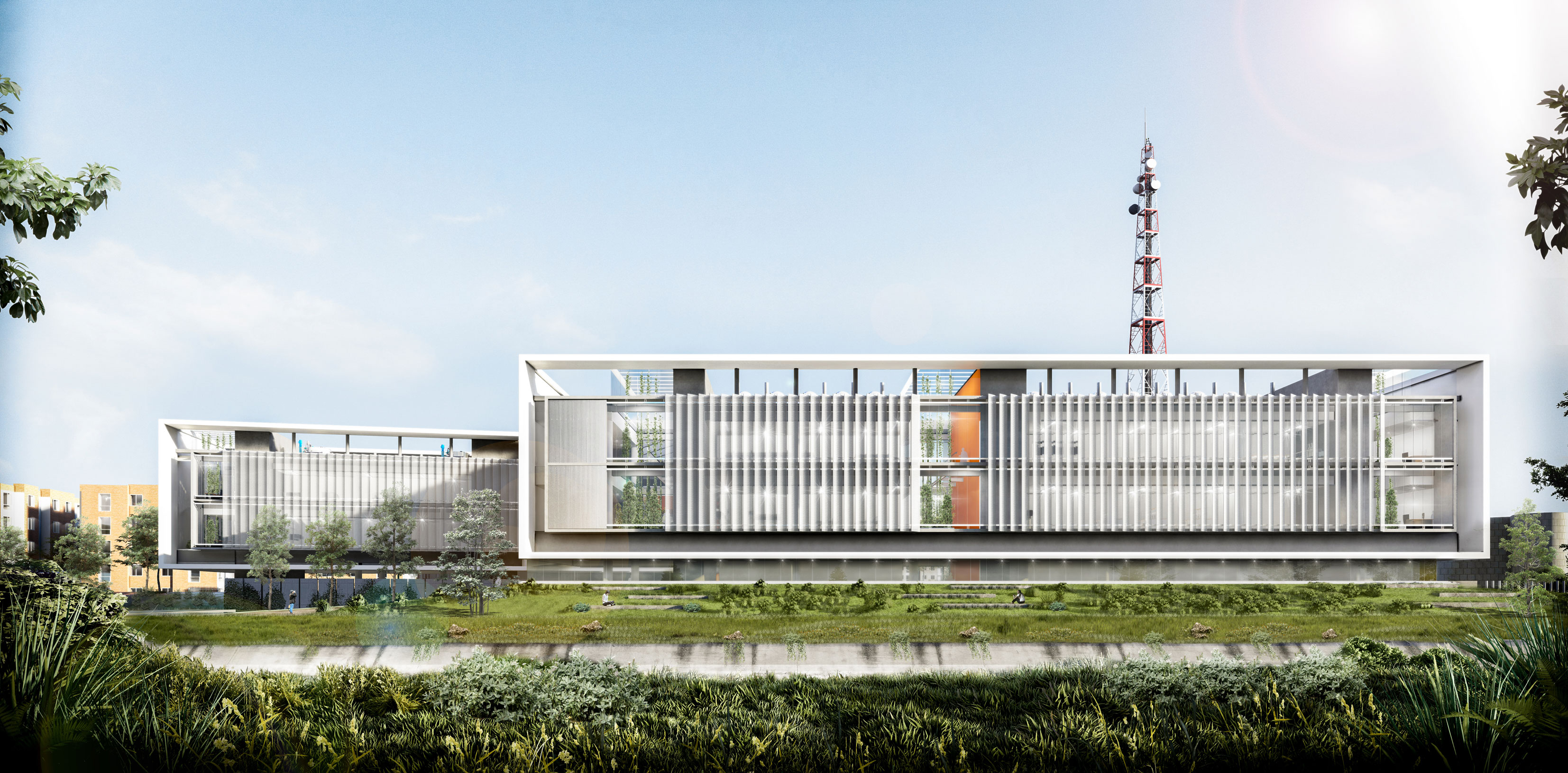 La propuesta presentada por el equipo EMS Arquitectos + COSME Arquitectura y Paisaje, se fundamenta en la idea de crear un enlace entre las condiciones especificas funcionales de un laboratorio técnico y la oportunidad ambiental que el contexto puede ofrecer, con el objetivo de mejorar el bienestar de los trabajadores y aportar al desarrollo medioambiental de la ciudad.